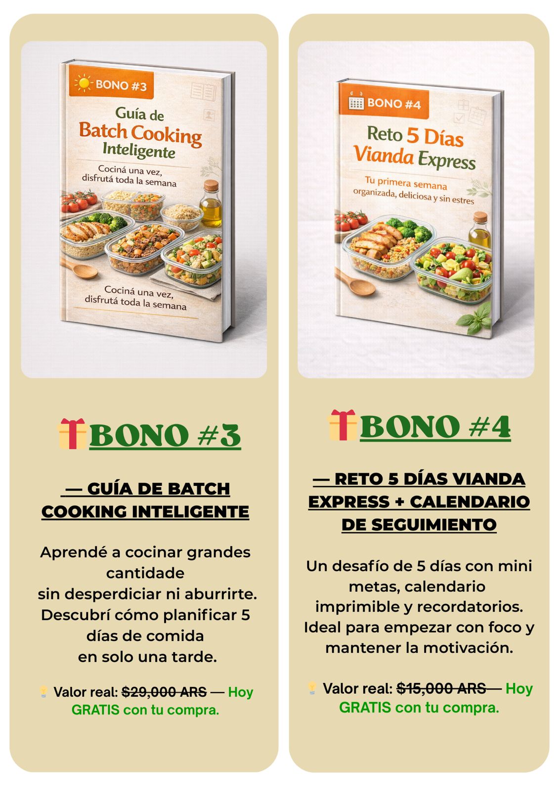 No son “extras”. Son las piezas que hacen que cocines 1 vez y tengas la semana organizada con comidas fáciles, reales y con pocos ingredientes.
